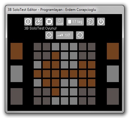 - 3B Solo Test oyunu, piyon ve delikli bir plastik platform üzerinde oynanan zeka testinin 3 boyutlu gerçekleştirimidir.