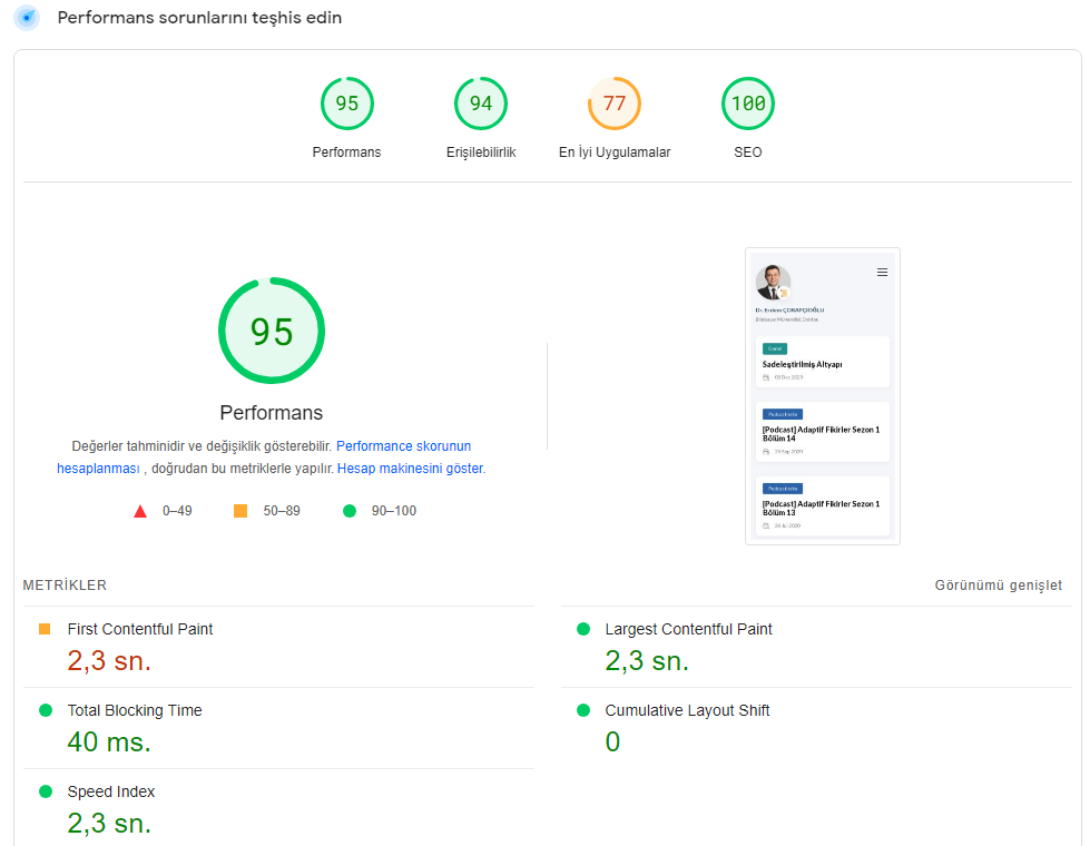 Bugün gelinen noktada HUGO altyapısı nedeniyle içeriklerin taşınması ve tema seçimi gibi noktalarda zorlandığımı ifade edebilirim. Ancak taşınabilirlik ve sadelik hedefime ulaştım. Ek olarak yukarıdaki görsellerde görüldüğü üzere hızla erişebilen bir sistem devreye alınmış oldu.